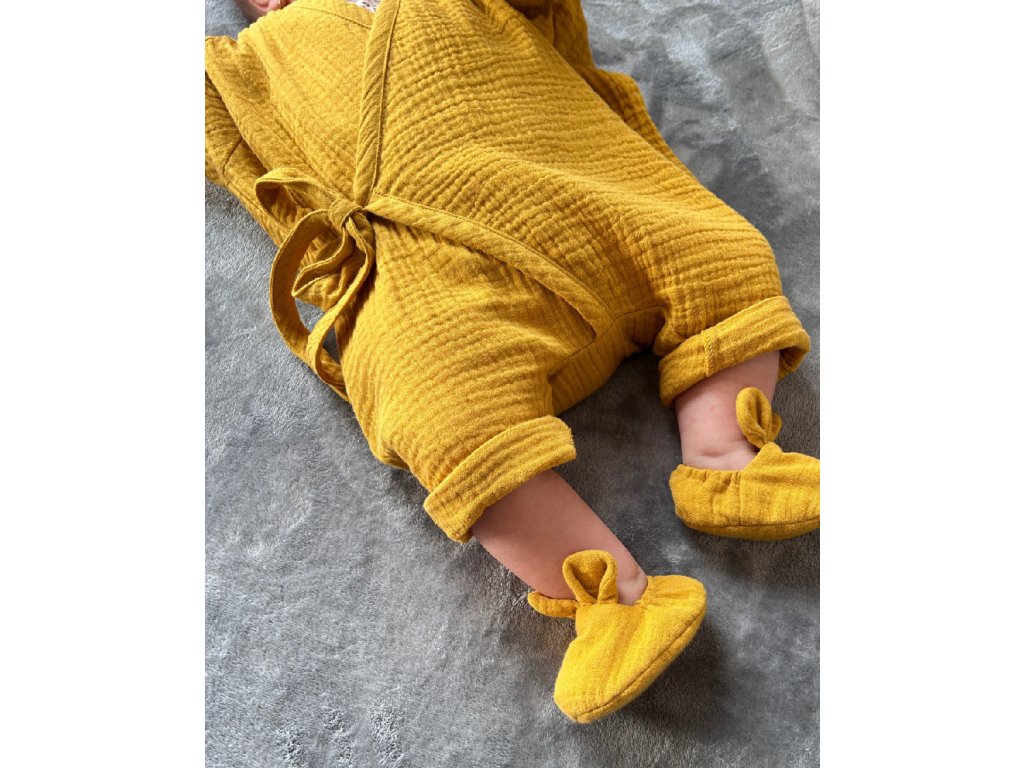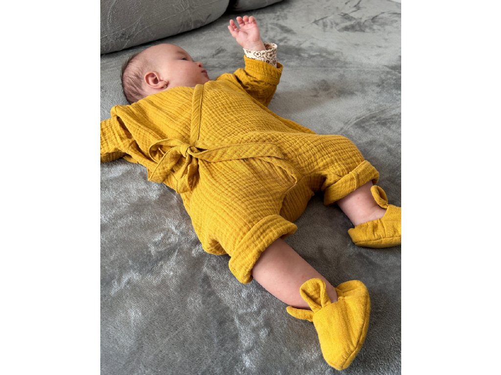 Mušelínové kimono vo veľkosti 0-3 mesiace . Vyrobené z jemného, priedušného mušelínu, ktorý je ideálny pre citlivú detskú pokožku.