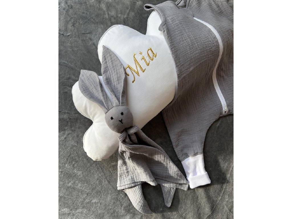 Krásny a funkčný mušelínový set v rovnakej farbe podľa Vášho výberu letný spací vak a mojkáčik Zajko, ktorý prinesie bábätku pokojné noci a pocit bezpečia.