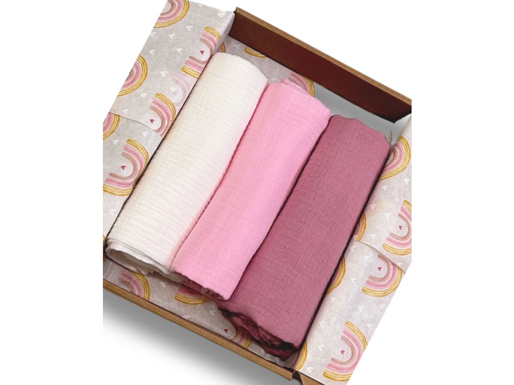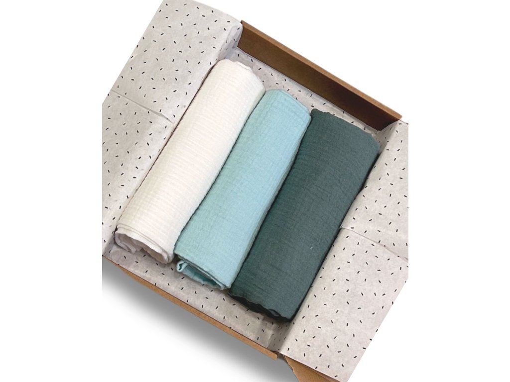 Súčasťou setu sú 3 kusy kvalitnej mušelínovej látkovej plienky s rozmerom 80 x 80 cm. Mušelínová plienka je ideálna na prebaľovanie, dojčenie, utieranie alebo ako ľahká prikrývka.
