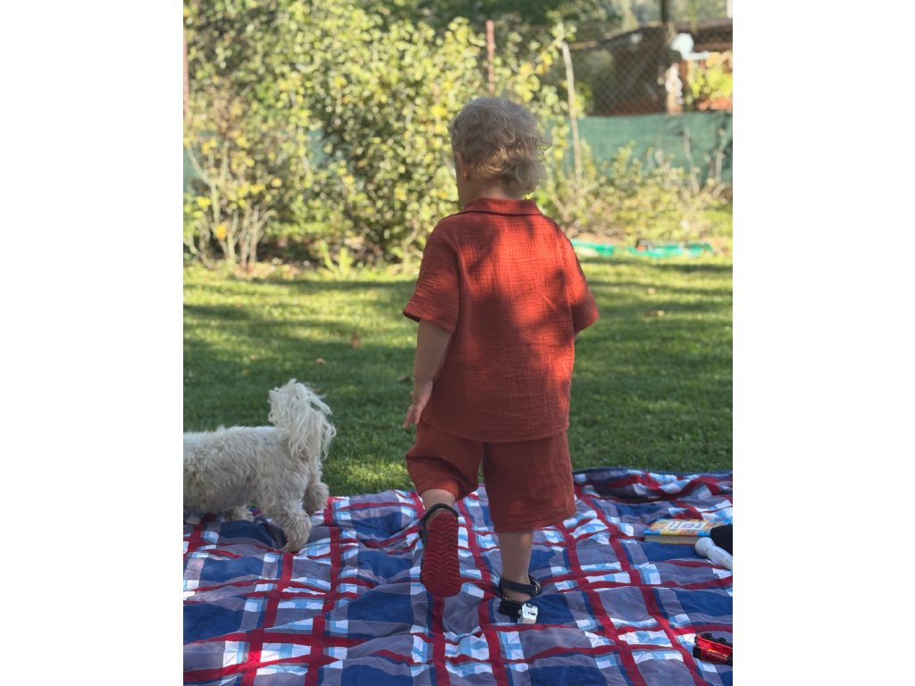 Ľahučká a priedušná mušelínová košieľka a kraťasy pre deti – ideálne na teplé dni. Mäkučký materiál a pohodlný strih.