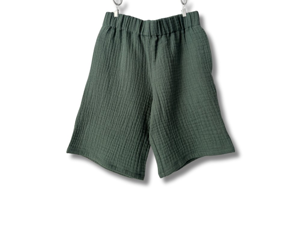 Mušelínové kraťasy sú navrhnuté s dôrazom na pohodlie, voľnosť pohybu a jednoduchosť nosenia. Vďaka ľahkému, priedušnému materiálu z dvojvrstvovej bavlnenej mušelínovej tkaniny sú ideálnou voľbou na teplé letné dni aj celoročné nosenie v interiéri.