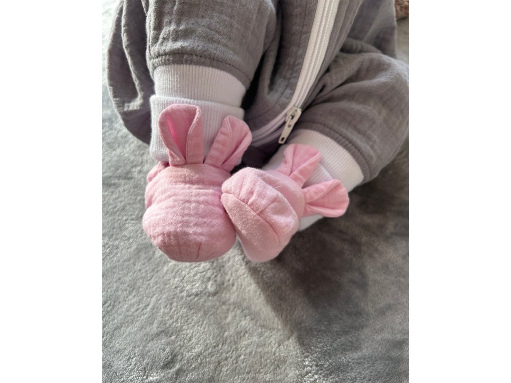 Mušelínové papučky sú jemné, mäkké a navrhnuté s ohľadom na najmenších. Vyrobené z dvojvrstvovej mušelínovej bavlny, ktorá je priedušná a šetrná k citlivej detskej pokožke.