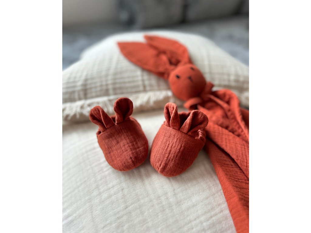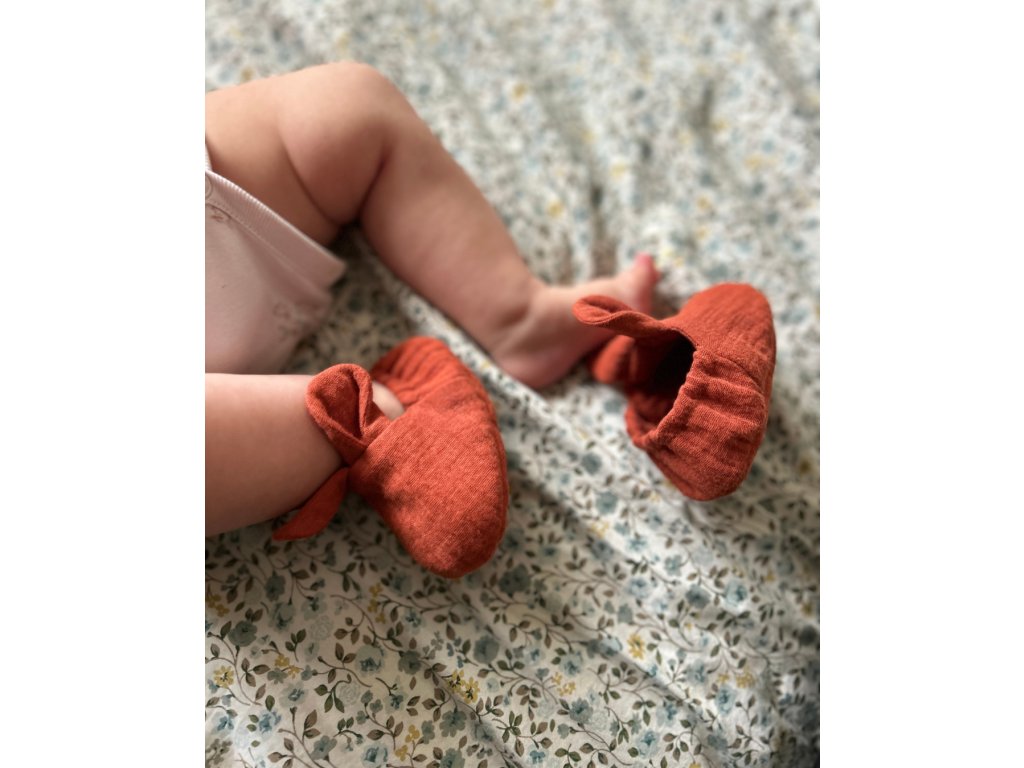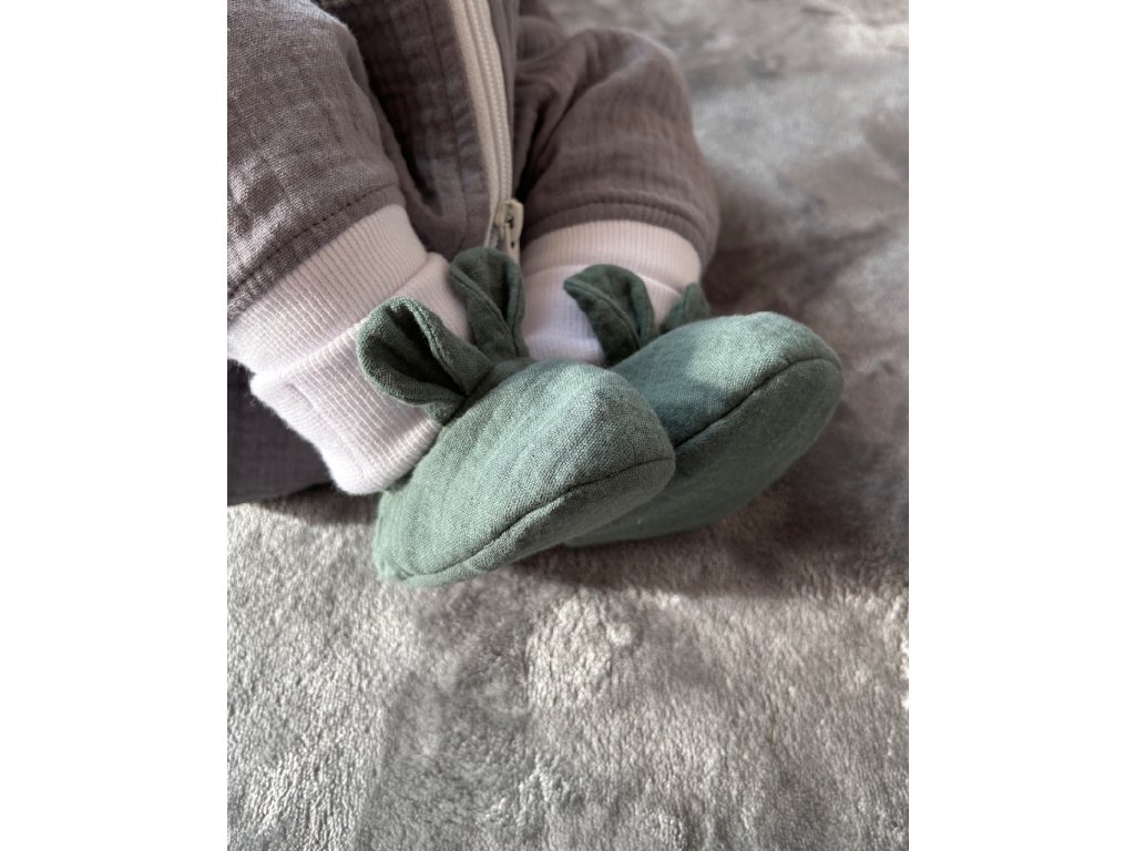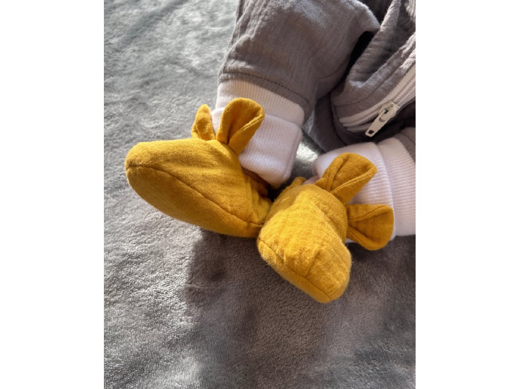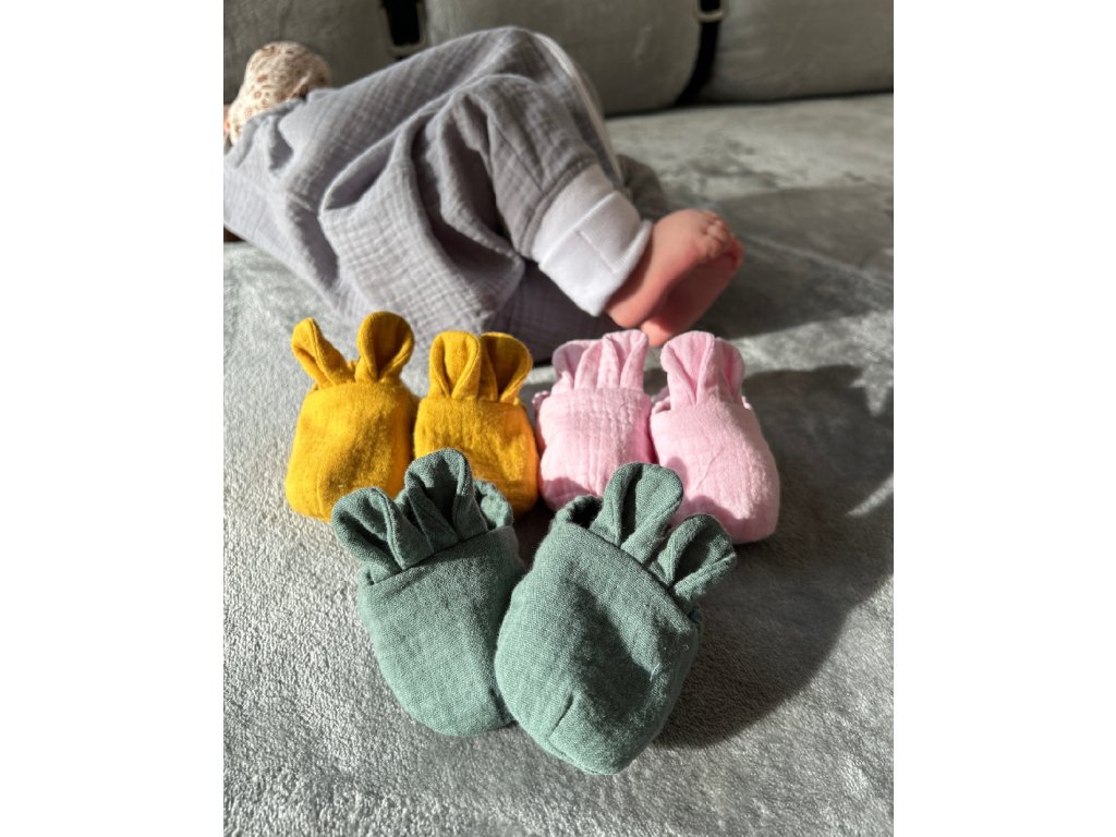 Mušelínové papučky sú praktickým a štýlovým kúskom pre bábätká do jedného roka. Skvelo sa hodia ako súčasť výbavičky aj ako darček pre novorodenca.