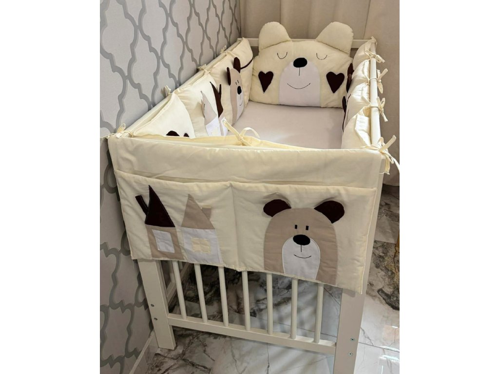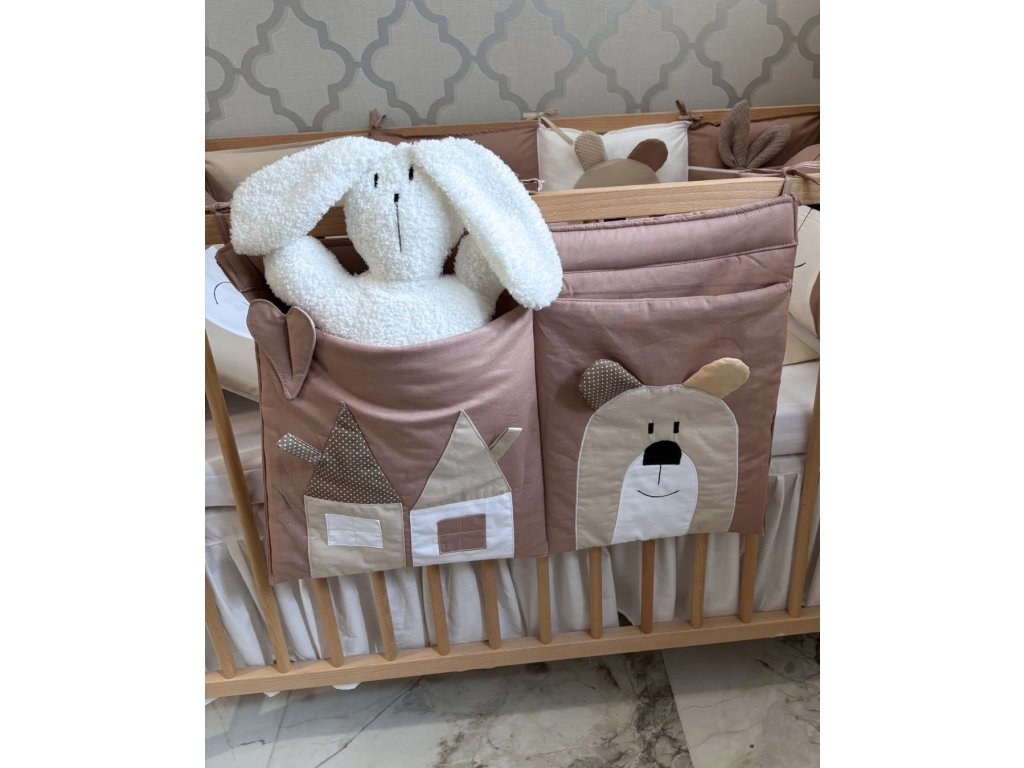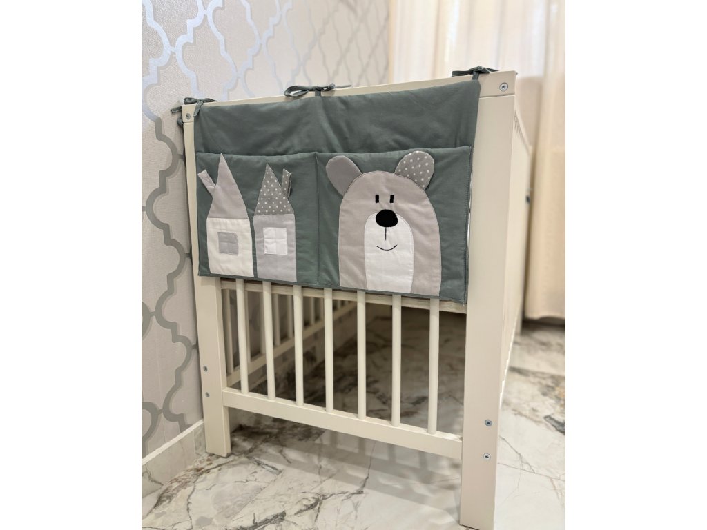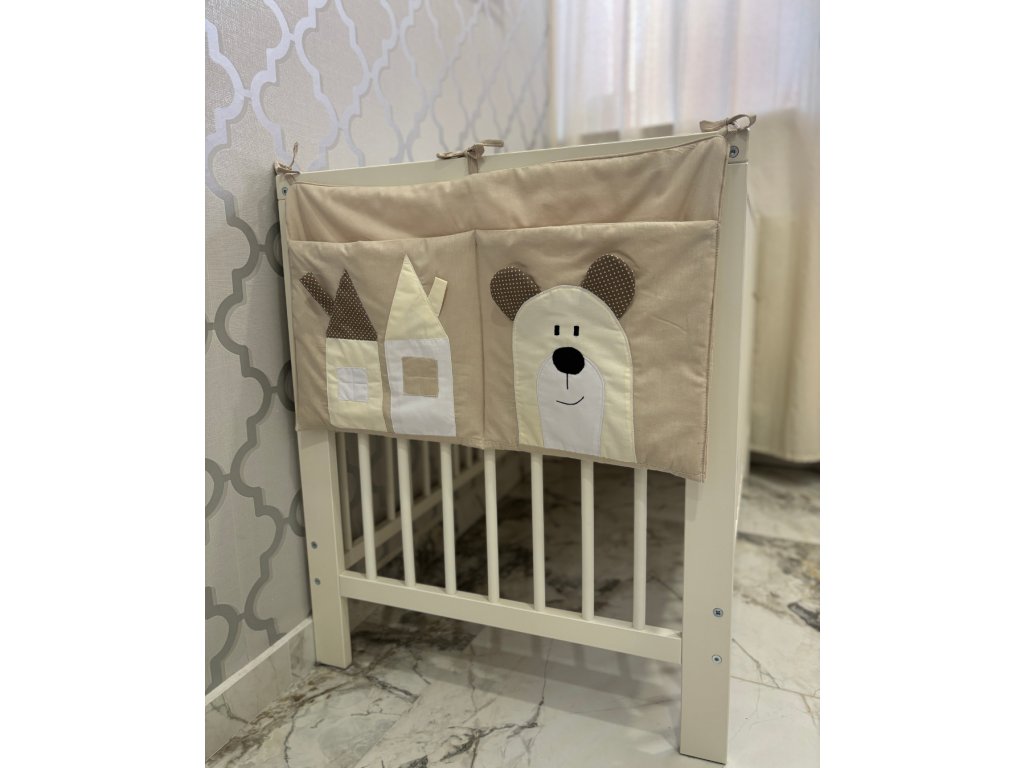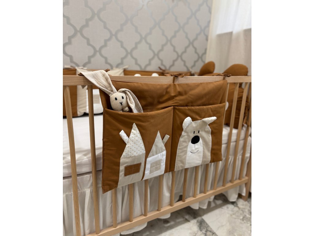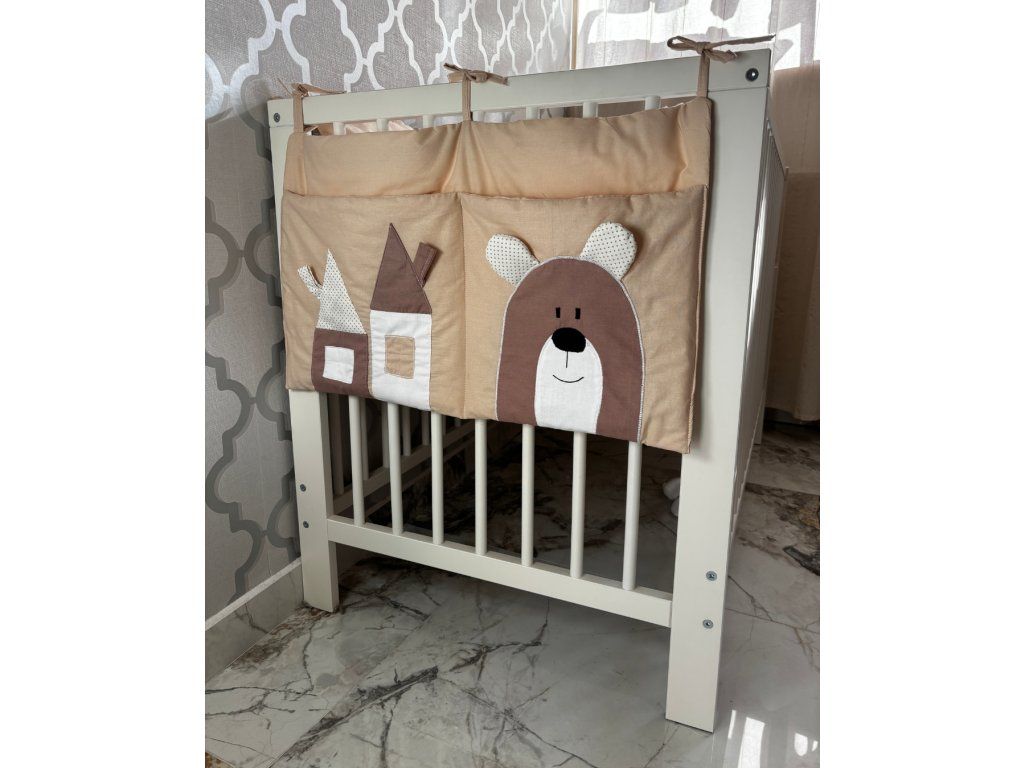 Organizér na postieľku zo 100% bavlny. Praktický doplnok na uloženie všetkých potrebných drobností pre bábätko.