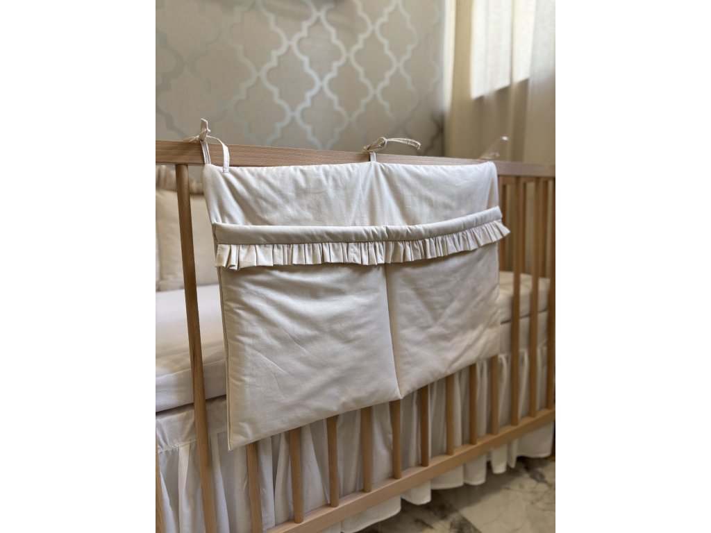 Organizér na postieľku zo 100% bavlny. Praktický doplnok na uloženie všetkých potrebných drobností pre bábätko.