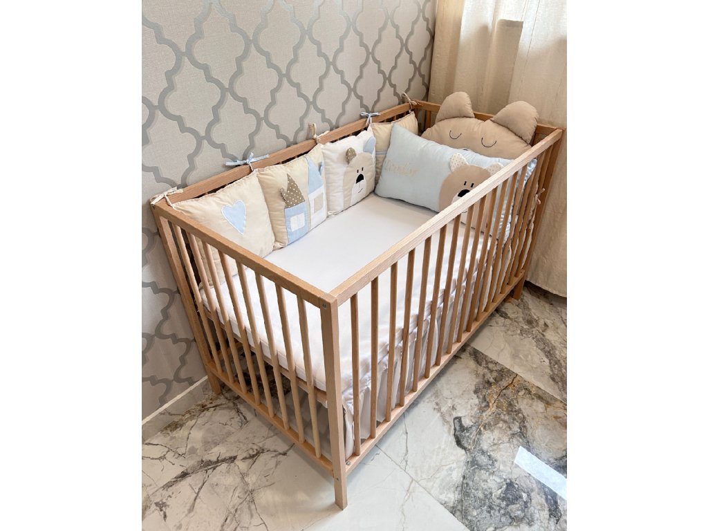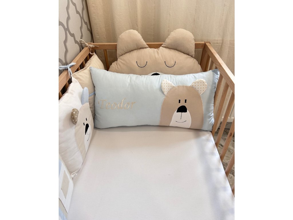 Doprajte svojmu dieťatku personalizovaný vankúš v tvare obdĺžnika vyrobeným z prvotriednej 100% bavlny. Nechajte si na mantinel vyšiť meno vášho dieťatka, ktoré uvediete do poznámky nižšie. Vďaka tomu bude tento mantinel špeciálnym darčekom a výnimočnou ozdobou detskej izby.